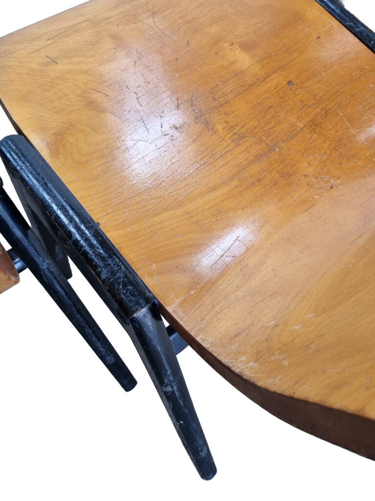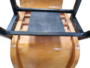 Materialen: beuken (multiplex kuip), hout/staal beslag