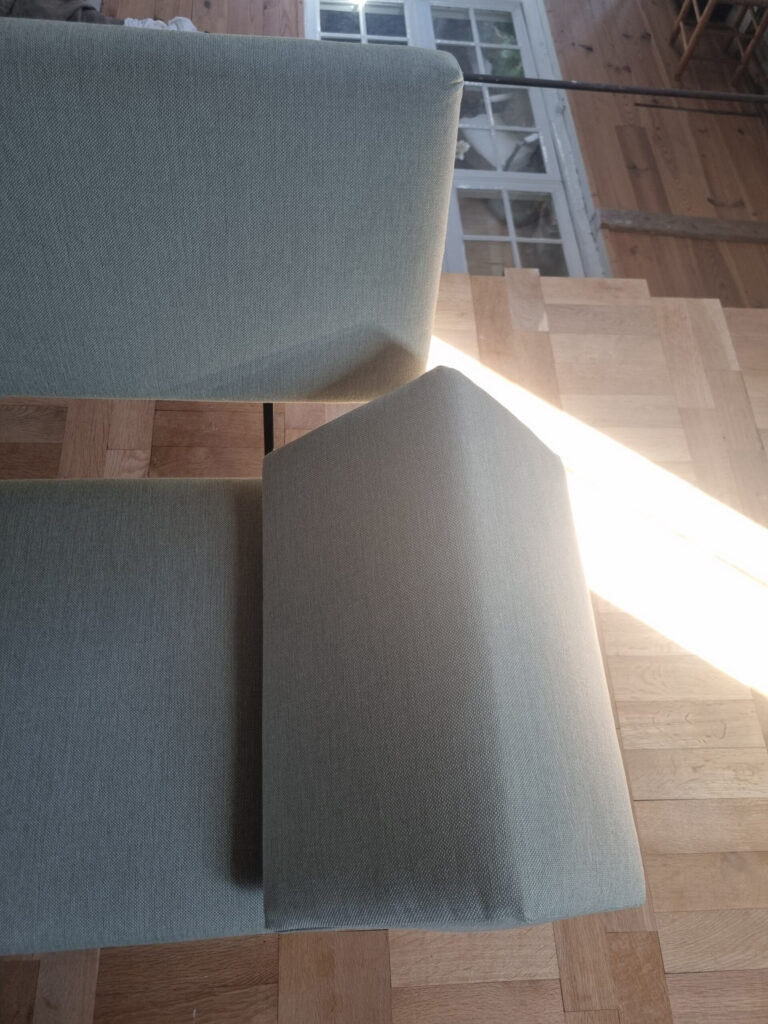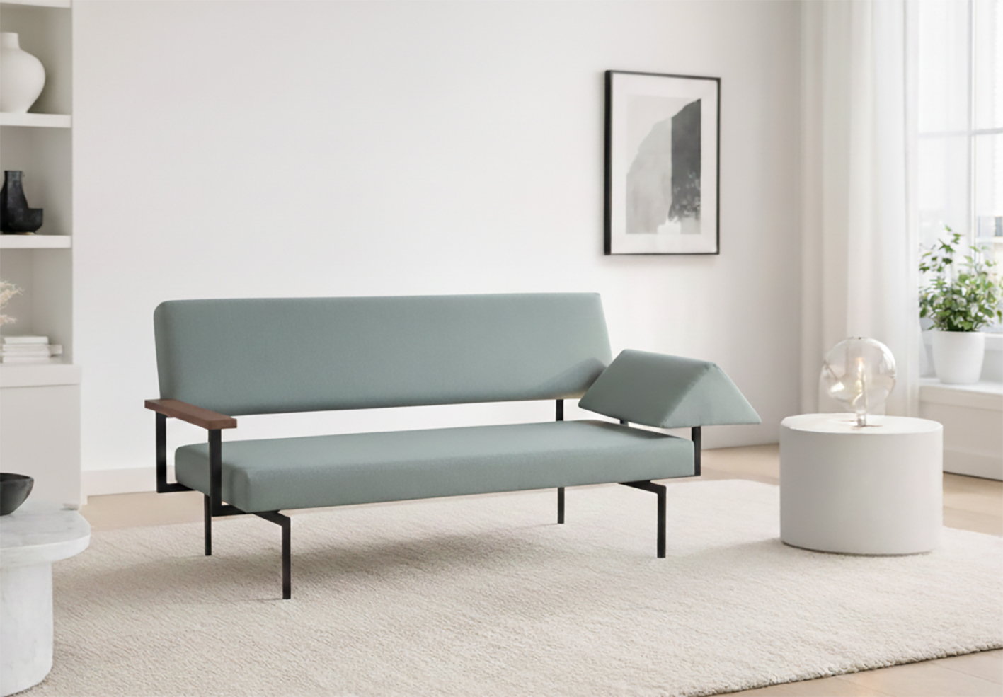 Its balanced proportions make it equally suitable as a sofa, daybed, or statement piece in a living room, gallery-like interior, or boutique hospitality setting. The restrained color palette allows it to blend seamlessly into both minimalist and more layered interiors.