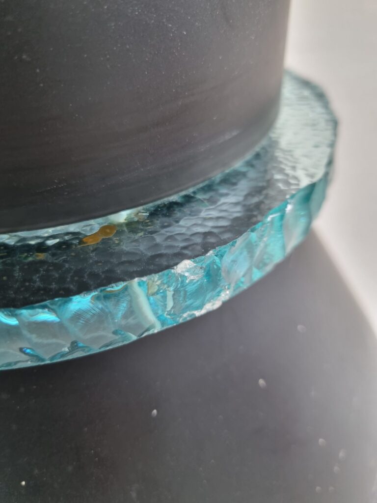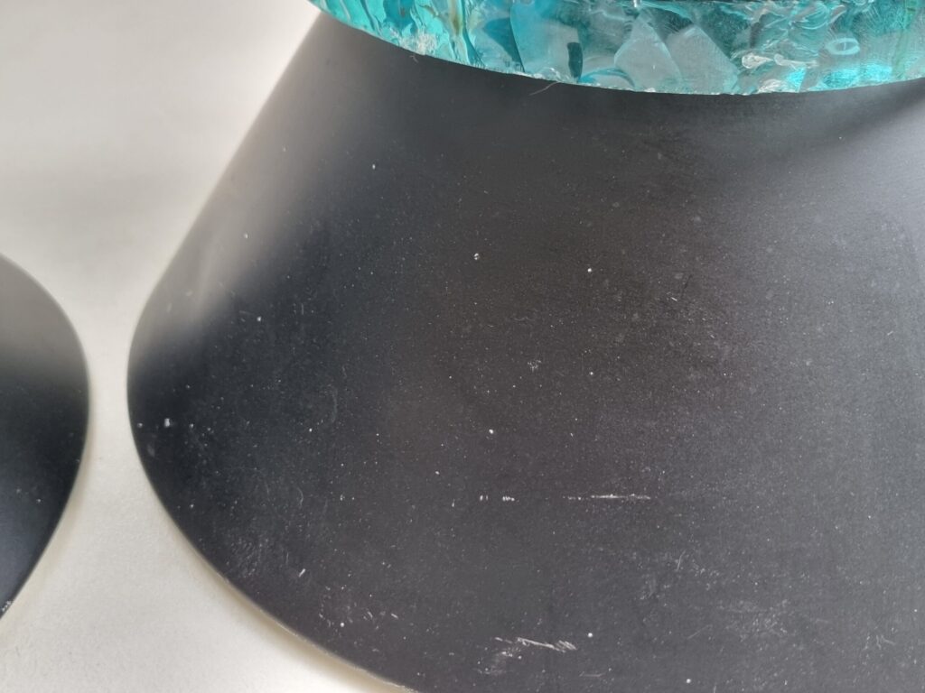 Materiaal: zwart gelakt metaal, massief getextureerd glas