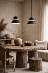 Het ontwerp is krachtig en ingetogen tegelijk: industrieel in vorm, maar verfijnd door het glas en het zachte licht. Hierdoor passen de lampen uitzonderlijk goed in een monumentaal interieur, een oud huis met kalkmuren en eiken balken, maar ook in een wabi-sabi of Japandi setting waar rust, materiaal en authenticiteit centraal staan.