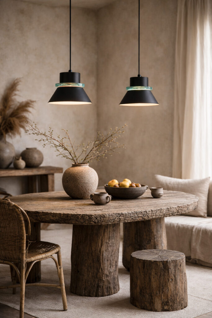 Een set die moeiteloos het middelpunt vormt boven een eettafel.