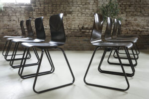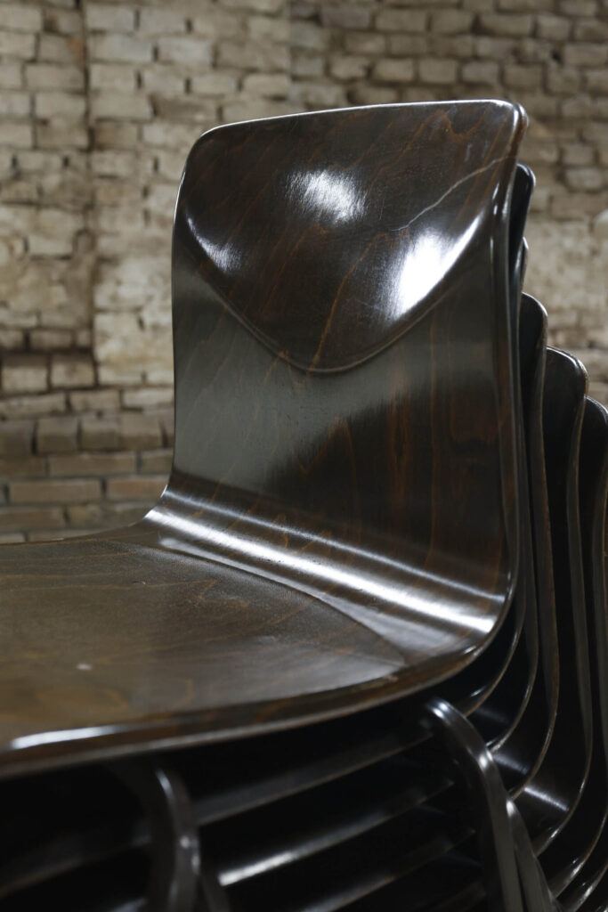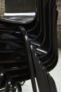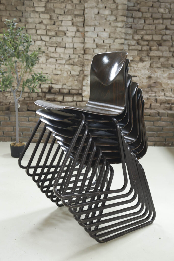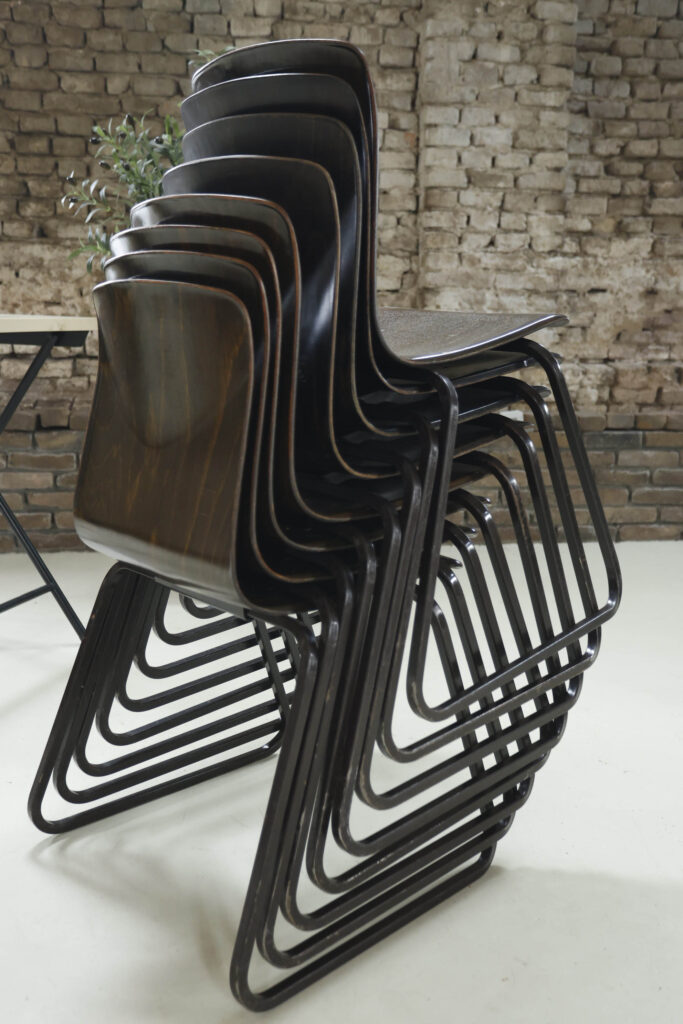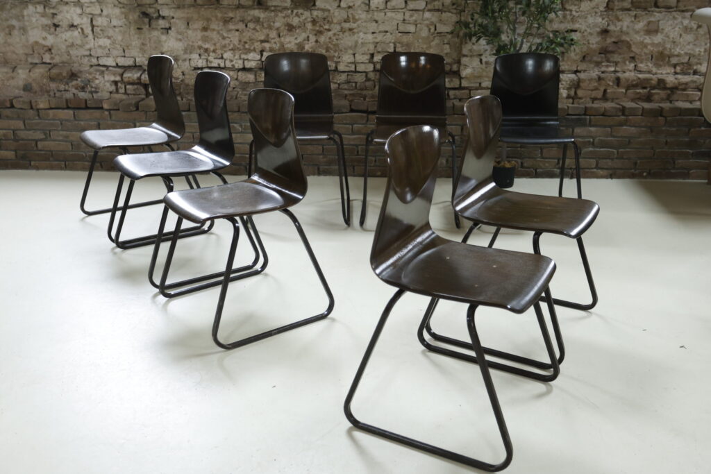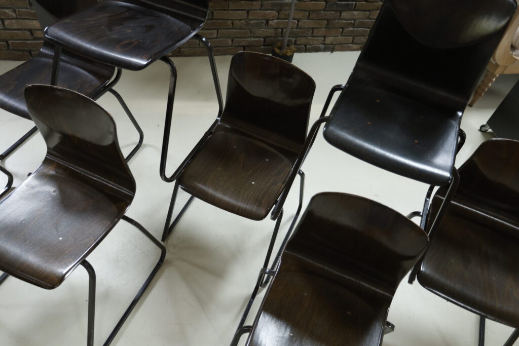Wij hebben van deze stoelen een mooie partij beschikbaar maar ze mogen ook per stuk weg. Wat deze partij bijzonder maakt, is de staat: de meeste stoelen verkeren in zeer goede vintage conditie. In deze kwaliteit en in grotere aantallen komen wij ze niet vaak tegen.