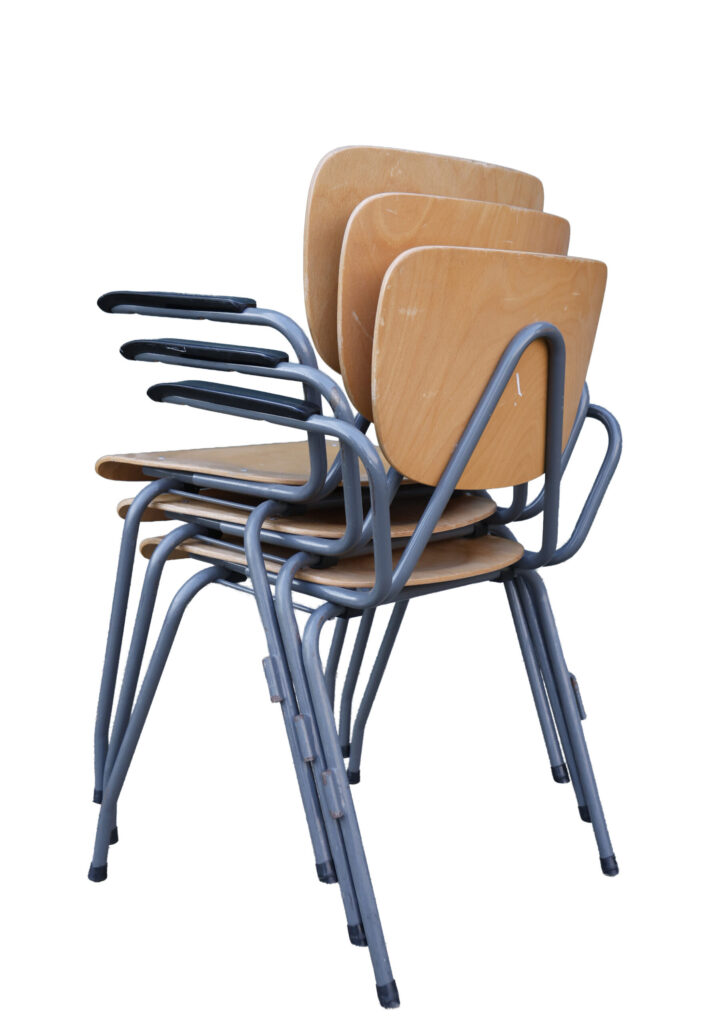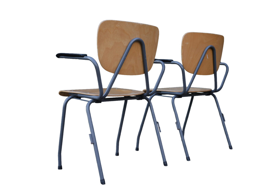 Vintage schoolstoelen – ontwerp Kho Liang Ie, geproduceerd door CAR Katwijk (kleine partij)