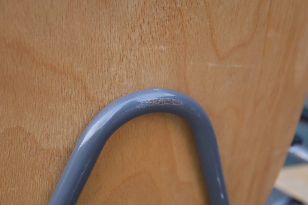 Stoer Nederlands vintage design met een warme uitstraling: hout (zitting + rug) op een stevig buisframe,